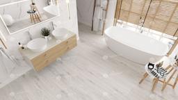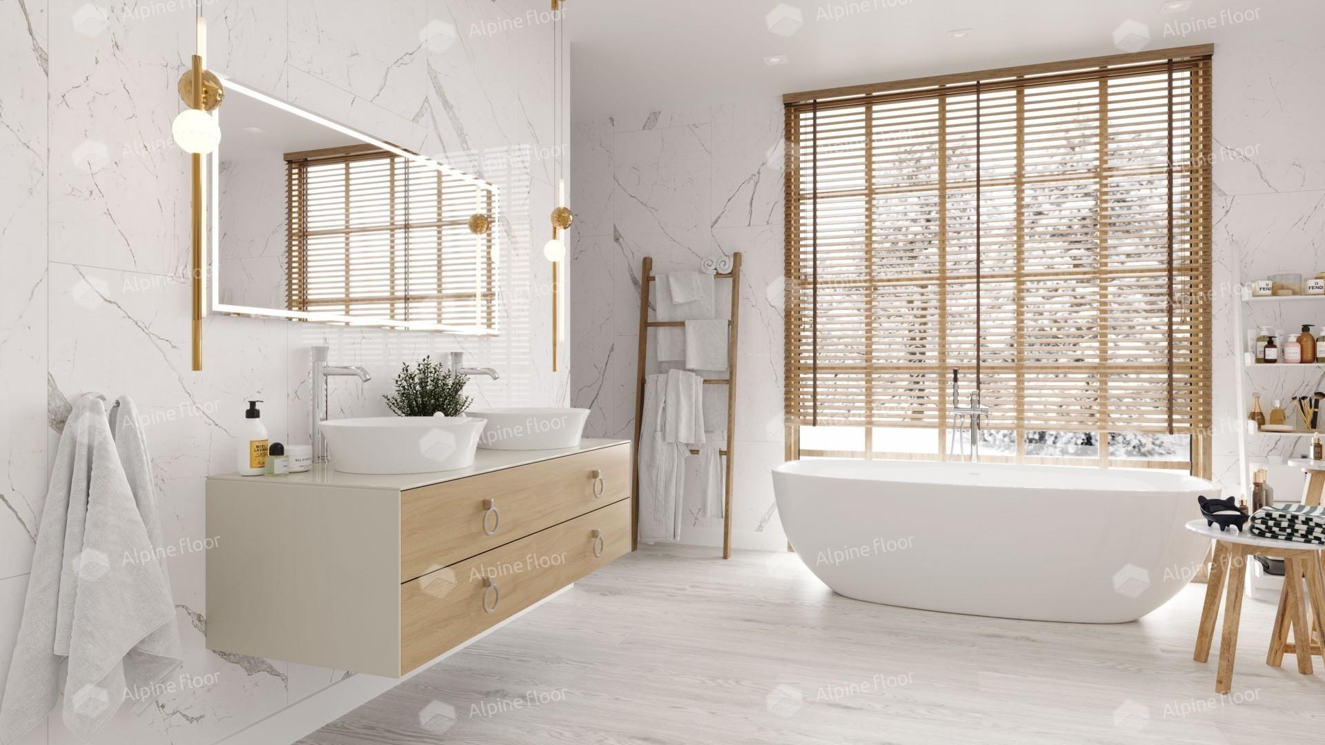 Представленная модель – это кварцвиниловая плитка, имитирующая дерево. Классические цвета делают покрытие универсальным. Оно удачно впишется в любые интерьеры: светлые и темные, яркие и нейтральные. Это может быть минималистичная комната или помещение в стиле постмодерн.