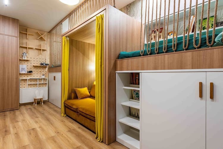 Дизайнеры программы «Большие перемены» создали яркий интерьер для детской комнаты. В качестве напольного покрытия был выбран ламинат коллекции Intensity. Декор Ливорно с приятным теплым оттенком отлично сочетается с выбранной мебелью.